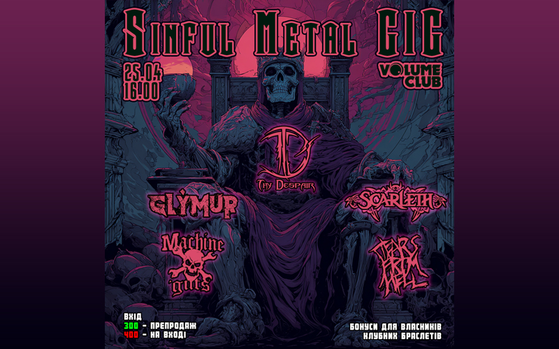 Sinful Metal GIG ️25 квітня Volume Club Предпродаж Thy Despair (Dark Metal) https://www.facebook.com/thydespair/ Glymur
